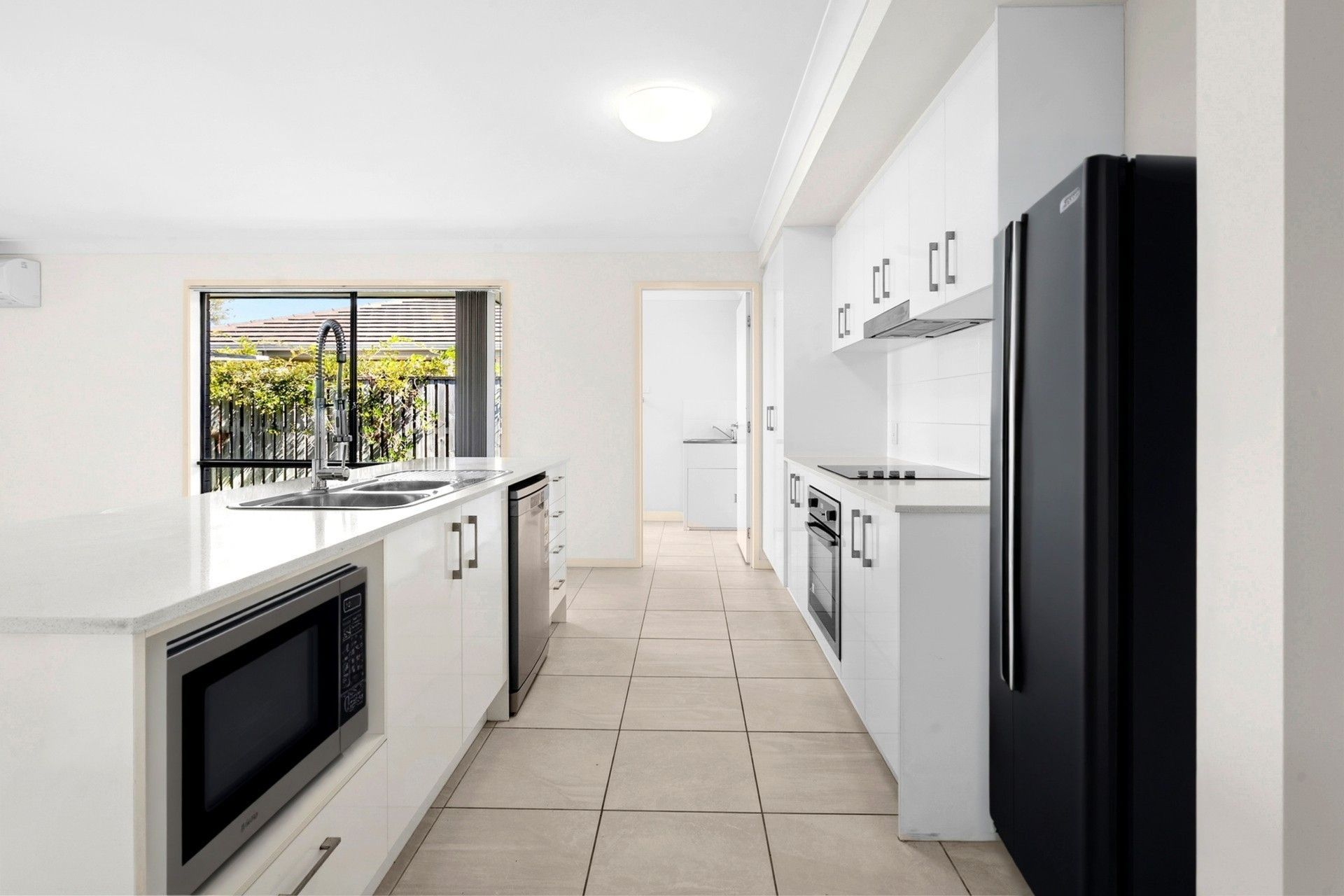 -Contemporary Kitchen with electric cooktop, dishwasher & oversized fridge space