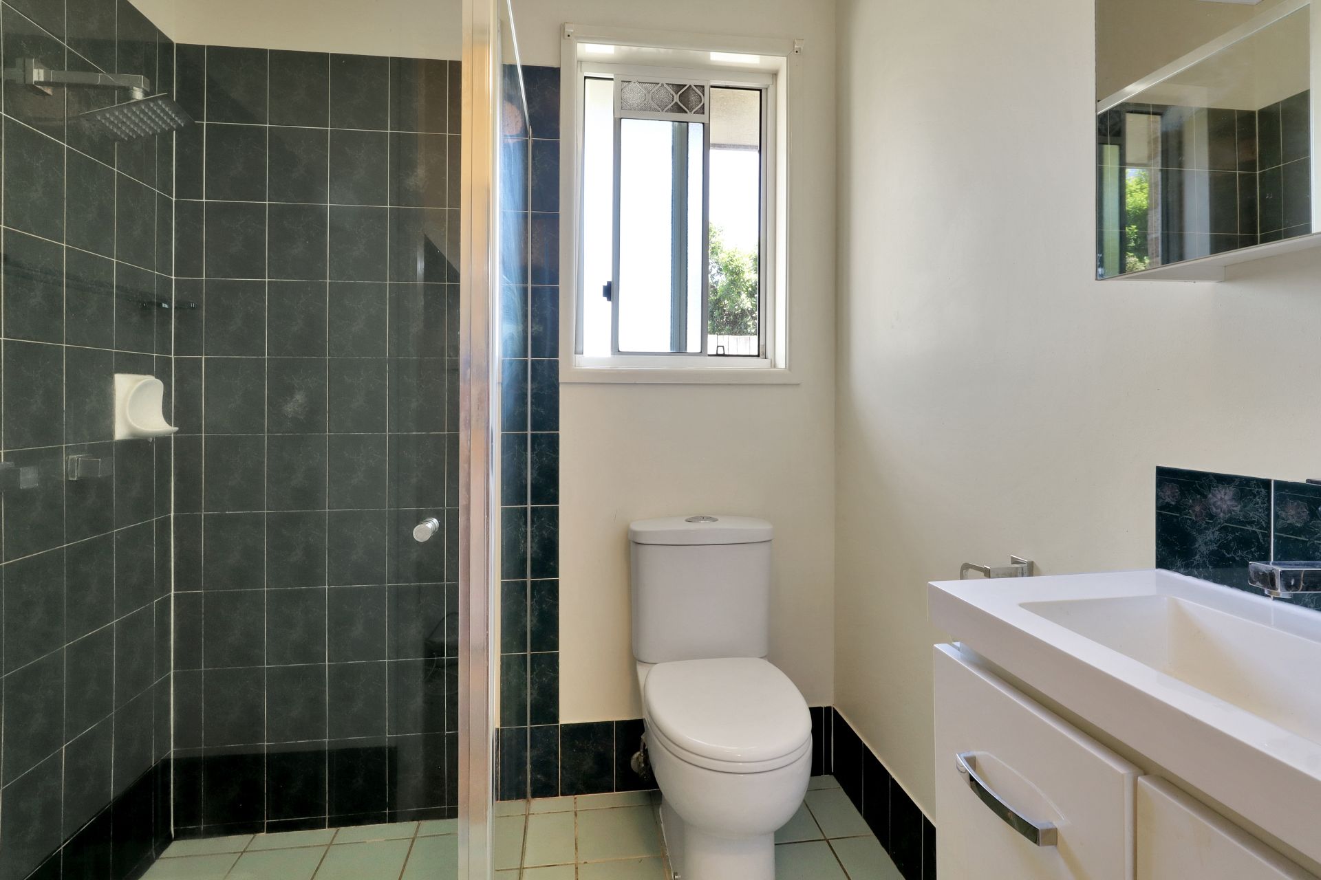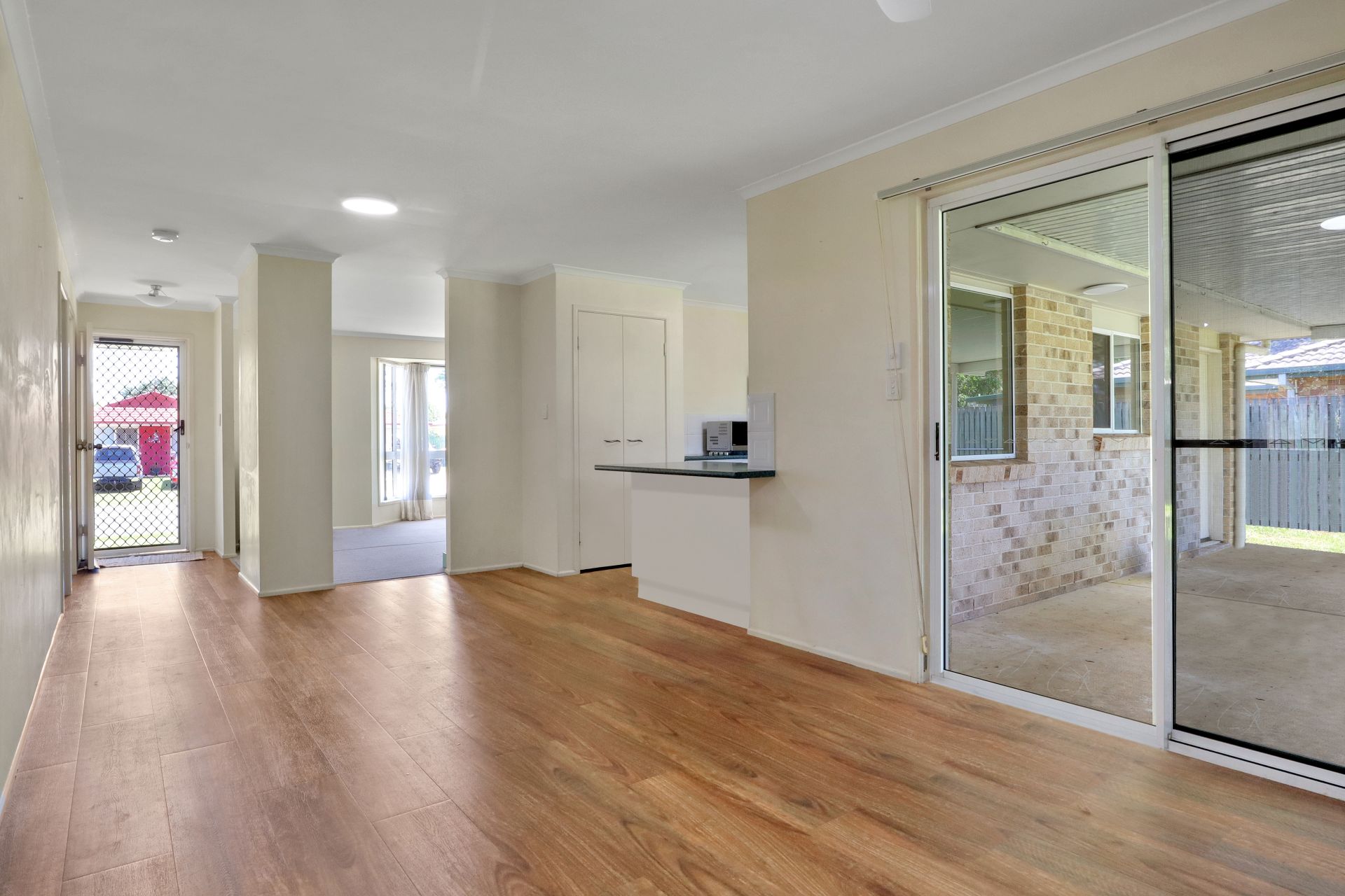 - Carpeted lounge room filled with natural light, complete with air-conditioning