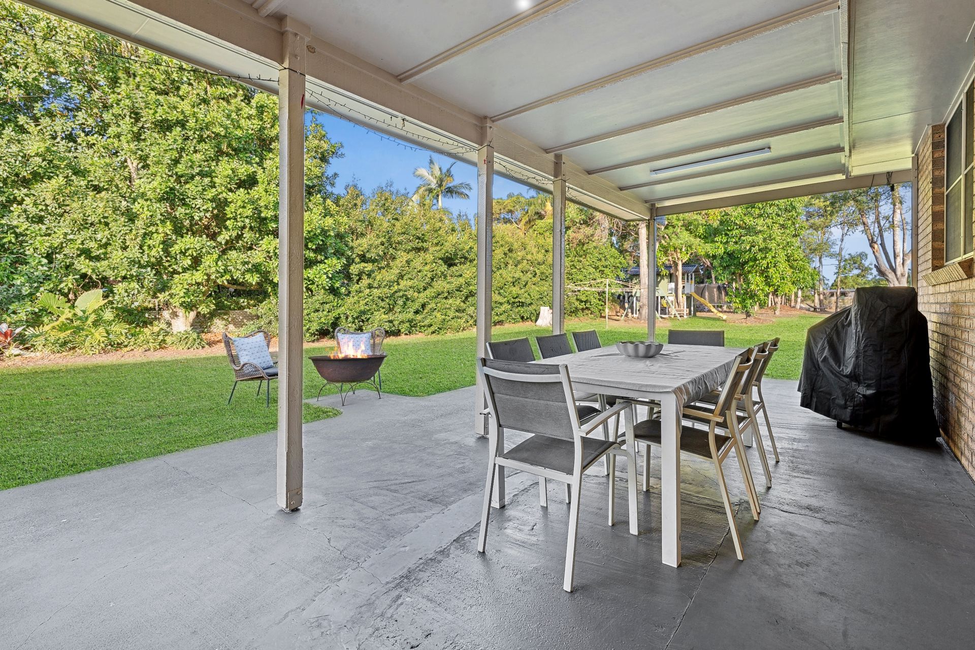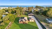 The meticulously maintained grounds feature an irrigated bore and a variety of fruit trees, providing a tranquil coastal oasis. A spacious concrete driveway offers plenty of parking for your caravan or boat, while the color bond front fence ensures privacy and security for your family and pets, complemented by an 8-c
