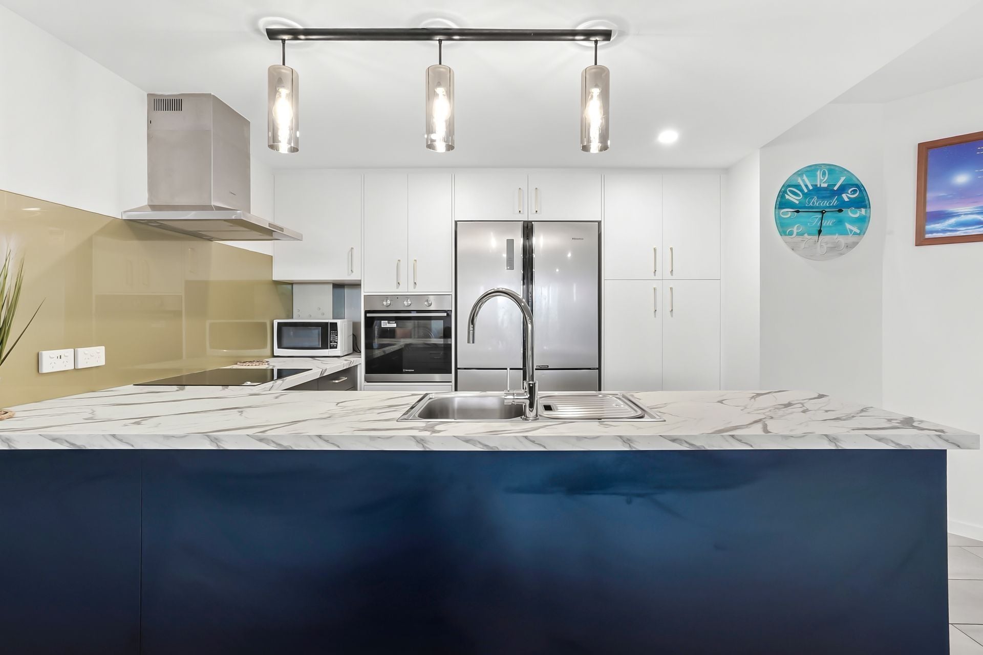 The kitchen is both functional and contemporary, equipped with quality stainless steel appliances, ample storage, and a practical layout that suits everyday living and casual entertaining. Both bedrooms are well-proportioned and include built-in wardrobes, with the master be