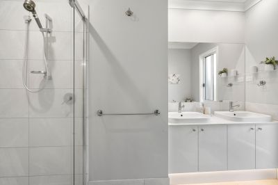 • Main bedroom retreat with double-sink ensuite, shower, toilet + his & hers walk-in robe