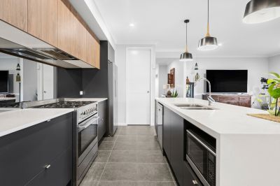 Welcome to this stunning 2019 Coral Homes residence, perfectly positioned on a large corner block offering space, privacy, and lifestyle. Thoughtfully designed for modern living, this impressive 4-bedroom, 2-bathroom home features a spacious media room, double garage, and an expansive open-plan layout that seamlessly connects indoor and outdoor living. The heart of the home is the sleek chef’s kitchen, complete with a luxurious Caesarstone waterfall benchtop, a generous breakfast bar, walk-in pantry, 900mm gas cooktop on town gas, dishwasher, and a plumbed fridge cavity—perfect for entertaining or family meals.