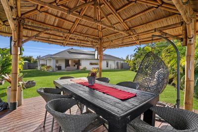 Outside, enjoy the ultimate outdoor lifestyle with a Bali hut for relaxing afternoons, a fire pit for cozy evenings, a garden shed, and convenient side access for a trailer or boat. Entertain in style or unwind under the covered alfresco area that flows beautifully from the open-plan living space. A newly installed roof (2022) ensures long-term durability, and hallway storage throughout the home keeps everything neat and organized.