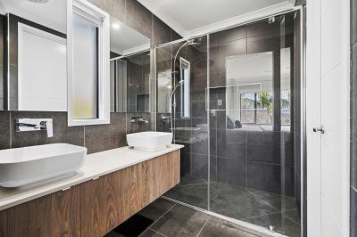 Enjoy year-round comfort with new ducted air conditioning (installed 2022), high 2.7m ceilings, and 2340mm high internal doors that enhance the sense of space and elegance. The home is tiled throughout for low-maintenance living, with plush carpet in the bedrooms. The master suite is a true retreat, featuring an extended walk-in robe, a luxurious ensuite with double vanities, double shower, rain shower with handheld feature, and a separate toilet for added privacy. The super king-sized bed pictured showcases just how spacious this master really is.