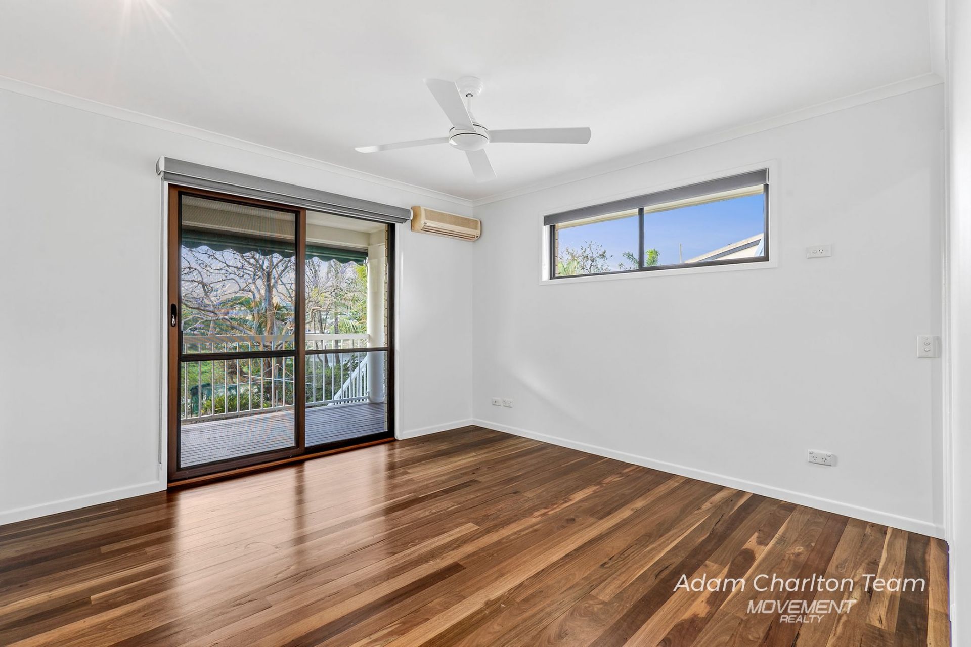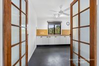 Upstairs, you’ll find an open-plan living and dining area that flows effortlessly to the spacious verandah, the perfect spot to relax and enjoy the tranquil outlook. The large kitchen is in excellent working order and features a handy serving window to the dining room, complemented by an electric oven and separate gas cooktop. Two bedrooms with built-in wardrobes are also on this level, including the master with private ensuite. Beautiful spotted gum flooring throughout enhances the warmth and charm of the home.