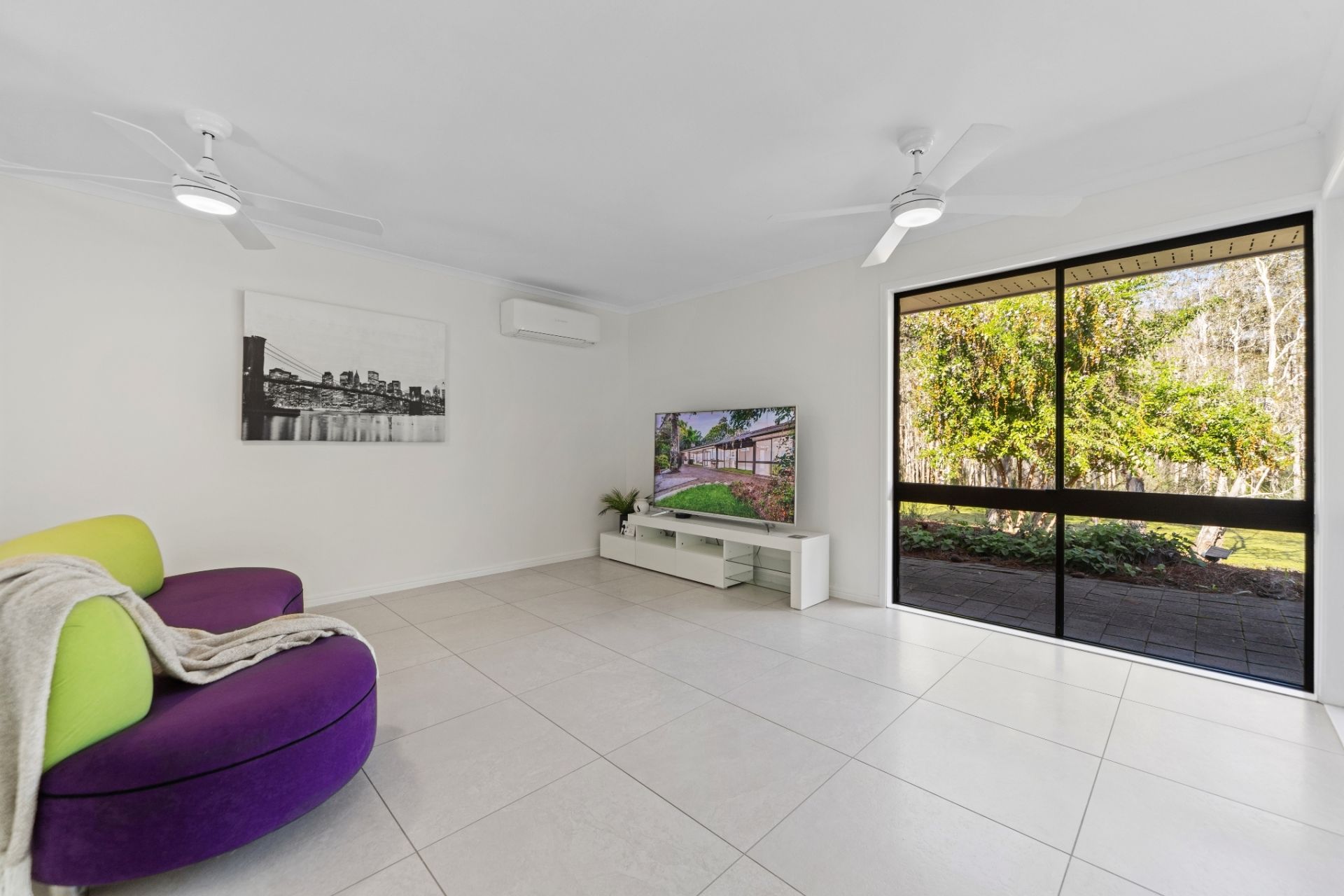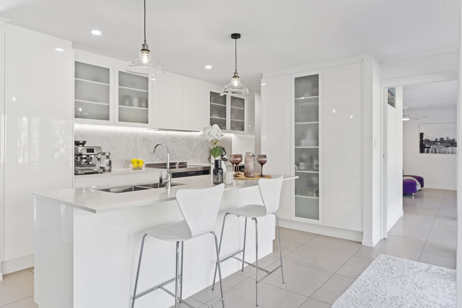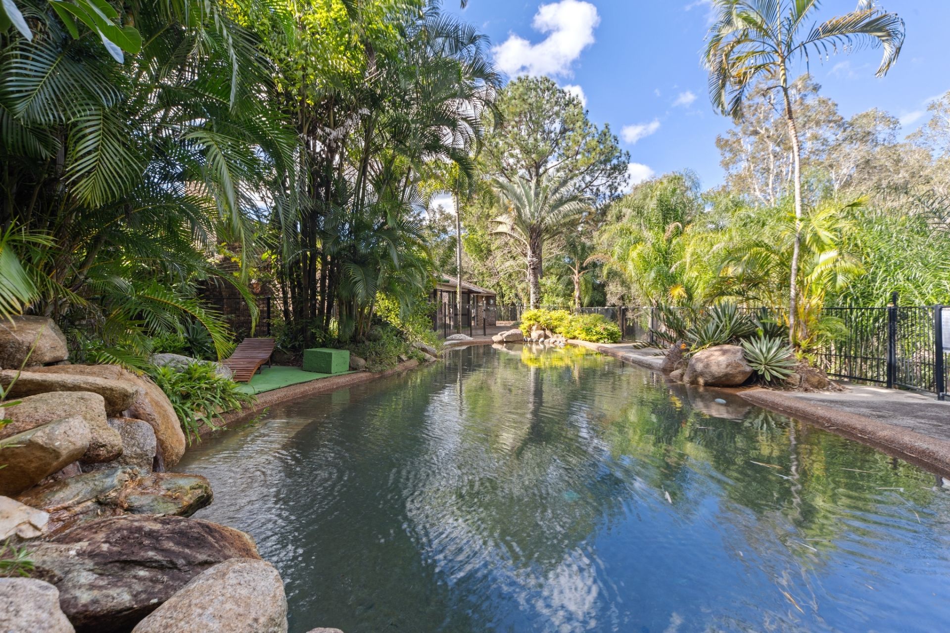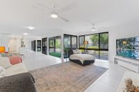 The professionally renovated interior and tranquil outlook from the living areas of this home truly must be seen to be appreciated. Every room has been refurbished to an “as-new” standard with contemporary design and neutral colour palette. The master bedroom and living areas feature reverse cycle air conditioning for year-round comfort. The chef’s kitchen will make entertaining a pleasure and features premium counter tops, two-pack gloss cabinetry, with plentiful storage, a walk-in pantry and 900mm freestanding stainless steel electric oven with induction cooktop. Centrally positioned within the spacious main living area, the kitchen looks out to the tropically landscaped pool, outdoor living spaces and natural bushland setting with complete privacy. The beautifully finished bathrooms are thoroughly modern and feature quality fixtures and tapware.