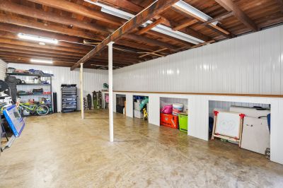 - Double garage with workshop area