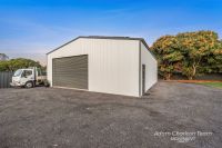 - 12m x 10.5m high-bay shed with power, mezzanine floor, shower, and toilet – ideal for work, storage, or hobbies