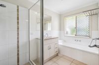 The master suite provides a private retreat with a walk-in robe and ensuite, while three additional bedrooms all include built-in robes, ceiling fans and carpet one also enjoying its own air-conditioning. A central bathroom with bathtub and shower, separate toilet, and multiple linen cupboards ensure practicality for growing families.
