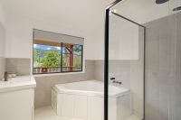 Heading up the stairs, you'll be greeted by a large open-plan living, kitchen, and dining area. The kitchen features breathtaking views, creating an inspiring backdrop for your culinary adventures. Down the hall, you'll find two more generously sized bedrooms and another newly renovated bathroom, complete with a spa bath for your relaxation.