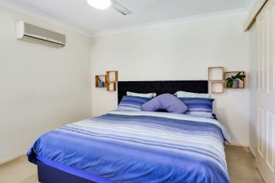 The property is well maintained and offers a comfortable owner-occupier or prospective rental income. The house itself features three bedrooms, one bathroom, and a two-car garage. There are fans throughout the bedrooms and lounge, with split system aircon in the main bedroom and lounge.