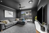 Entertainment reaches new heights in the blacked-out theatre room, complete with a feature built-in marble top entertainment unit-an ideal retreat for movie nights, providing a cozy sanctuary to block out the world.