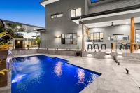 Outside, the home’s exceptional features continue to unfold, with over 200m² of beautifully finished concrete and tiled areas designed for both aesthetics and functionality. The alfresco entertaining space is nothing short of spectacular, complete with an outdoor BBQ and kitchenette, seamlessly connected to the butler’s pantry via servery windows. An inbuilt fireplace, outdoor speakers, and a wall-mounted TV make this the ultimate space for hosting gatherings or simply unwinding in comfort. Overlooking the stunning in-ground fibreglass pool, this outdoor haven is perfect for families who love to relax and entertain. A dedicated pool house or mancave, complete with its own bathroom, adds another layer of convenience and luxury.