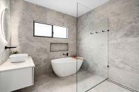 Floor to ceiling tiles throughout all bathrooms and powder room 600x600mm