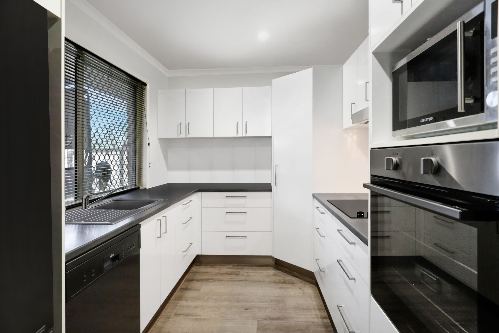 Kitchen with electric, stove oven and dishwasher