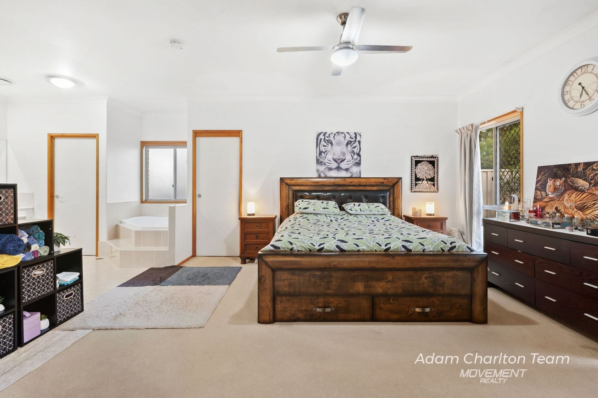 Master bedroom with walk-in robe, open ensuite and spa bath