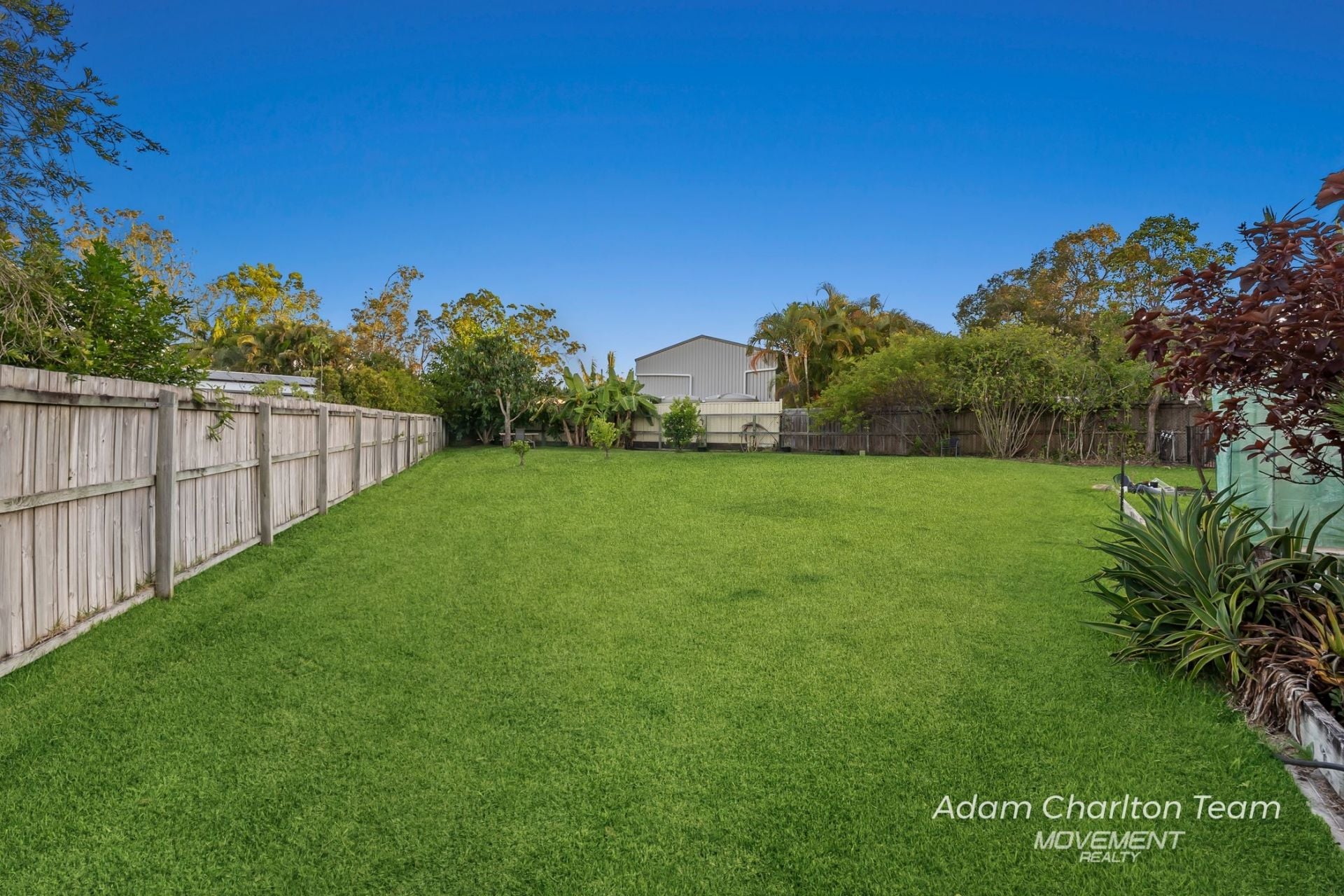 Established fruit trees, including bananas, mangos, mulberry, limes, lemon and passionfruit also colorful garden beds which are connected to an automated sprinkler irrigation system for effortless maintenance.