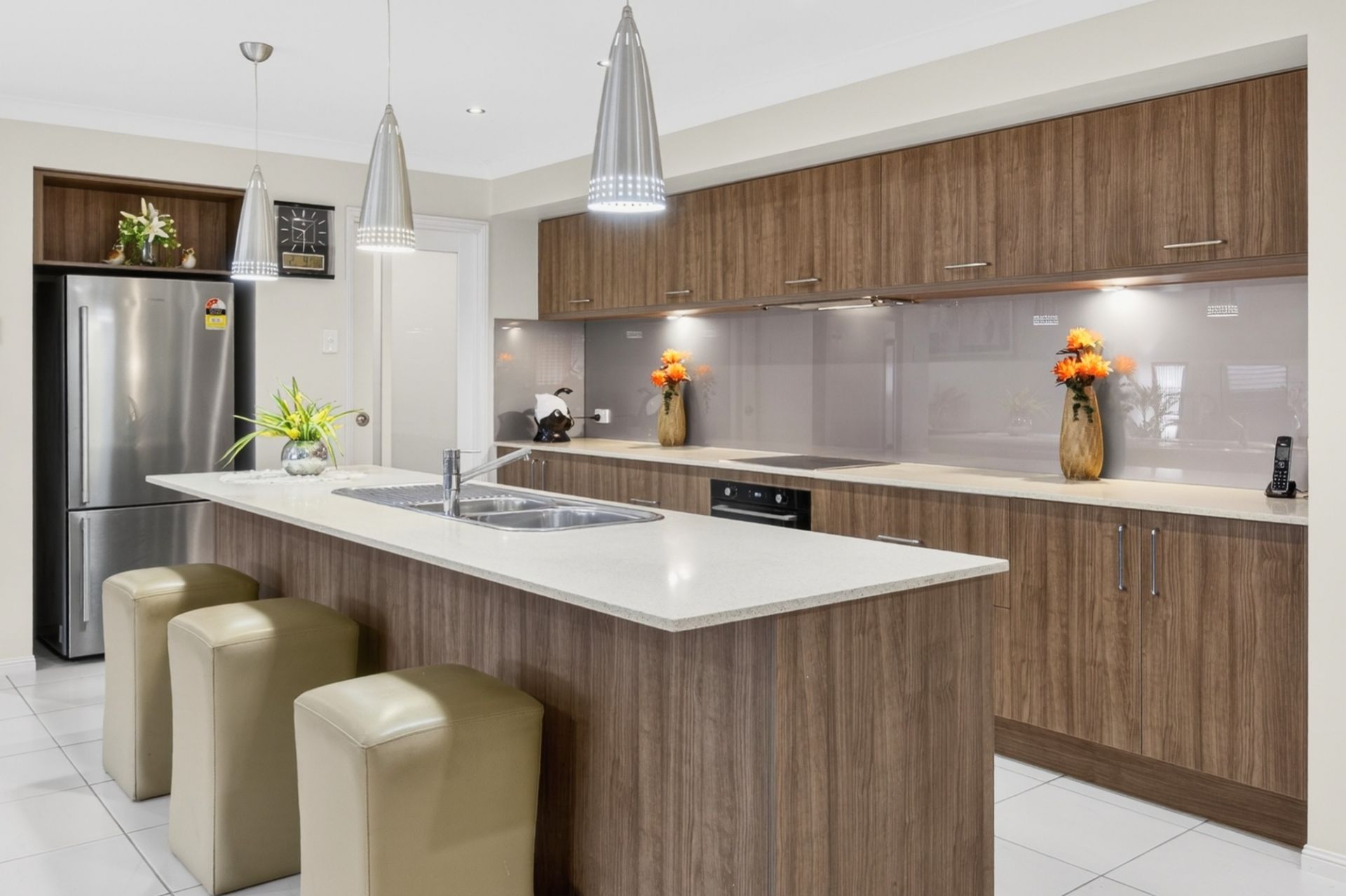 • Gourmet kitchen with walk-through pantry and large central island bench, dishwasher, electric oven and cooktop