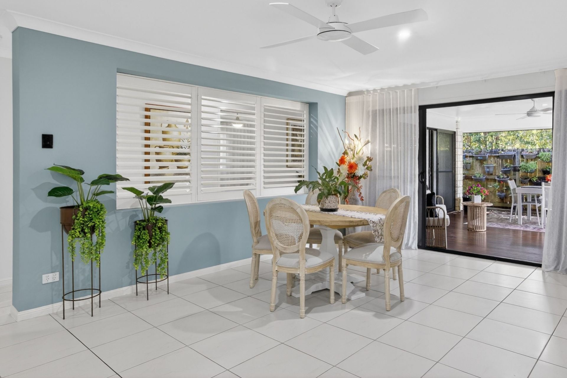 • Covered alfresco entertaining area with decking, roll-down screen and ceiling fan