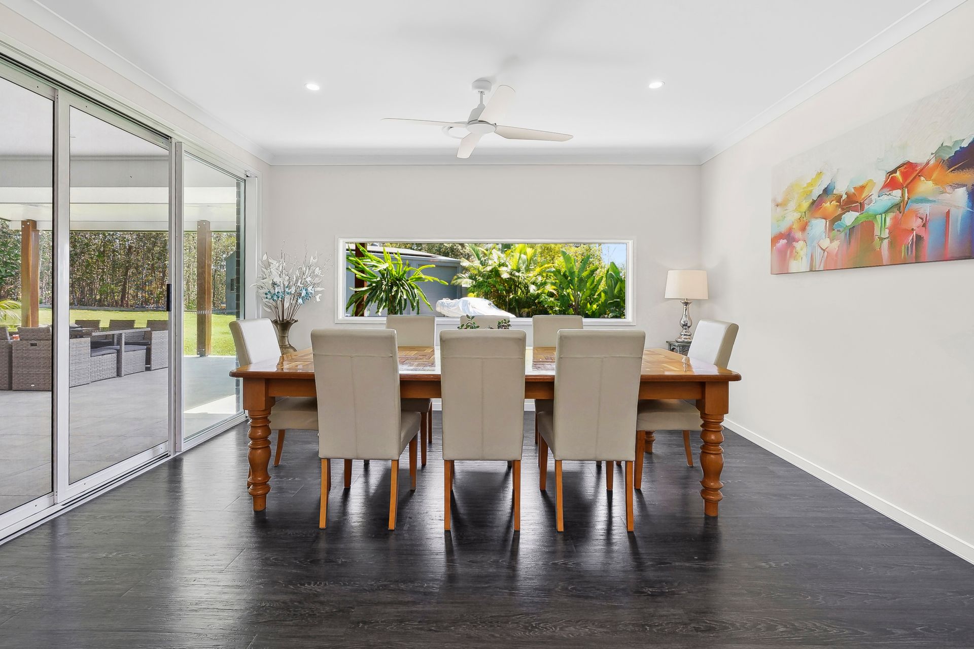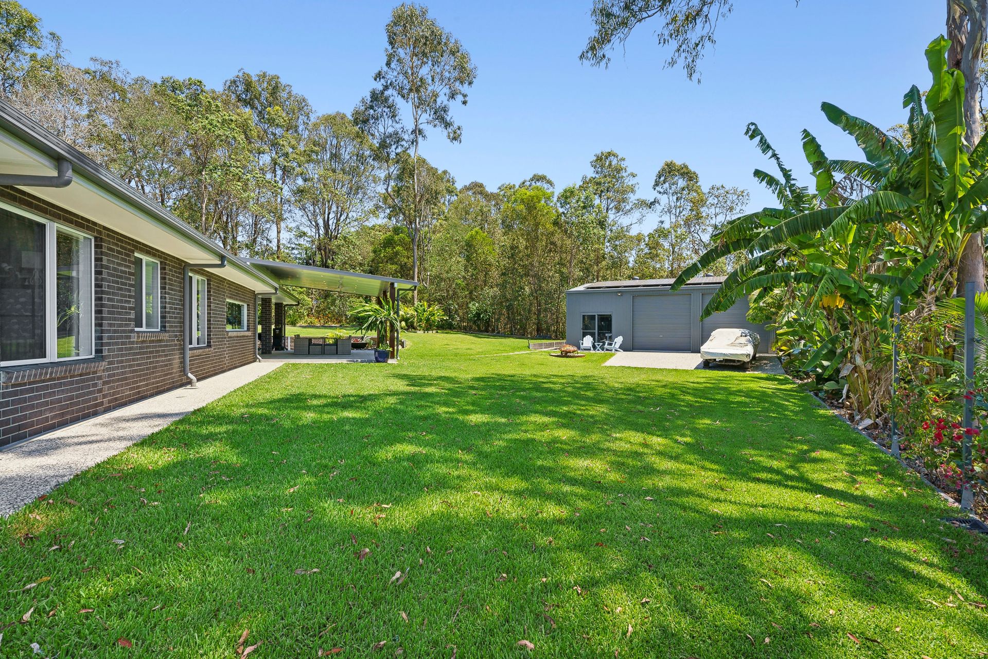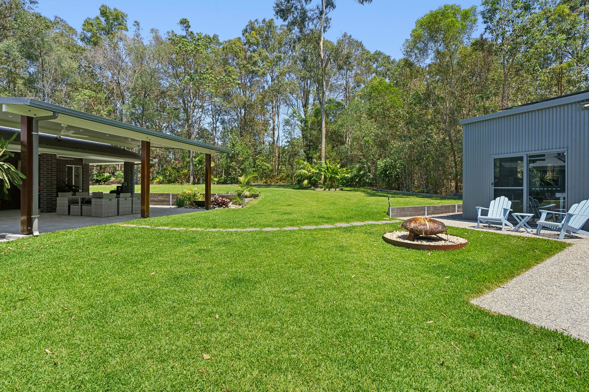 Outdoors, an extended tiled alfresco area awaits, perfect for entertaining or unwinding with family and friends. Gather around the fire pit or BBQ while overlooking the expansive, picturesque yard, ideal for enjoying nature in your own private haven.