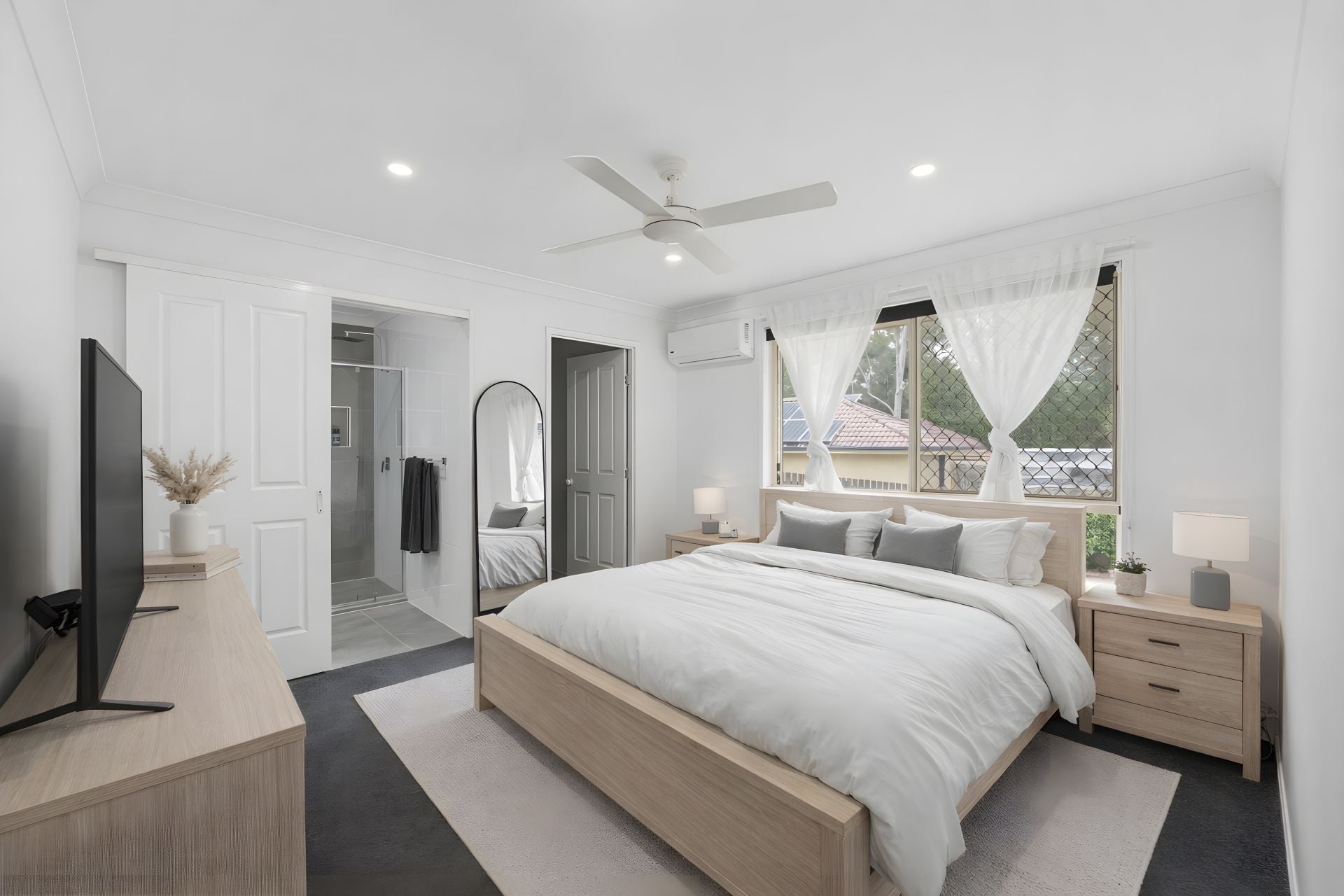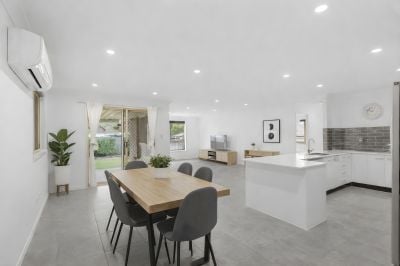 Featuring open-plan living, a modern kitchen with stone benchtops, and a fresh 2021 renovation, the home is designed for easy living. Enjoy year-round comfort with air conditioning and ceiling fans throughout.