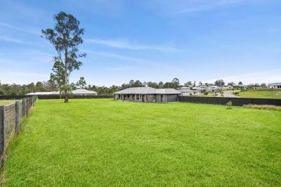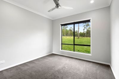 Demi Low proudly presents 71 Tilpawai Road, Woodford – a stunning, modern low-set brick home, just 1 year old and set on an impressive 7,909m² block. This superb property features four bedrooms, each with built-in wardrobes and ceiling fans, along with two well-appointed bathrooms. The open-plan lounge and dining area create a warm, inviting space that flows effortlessly to a spacious outdoor entertainment area, perfect for BBQs and family gatherings. Fully fenced for privacy and security, this home offers a blend of space, comfort, and tranquillity.