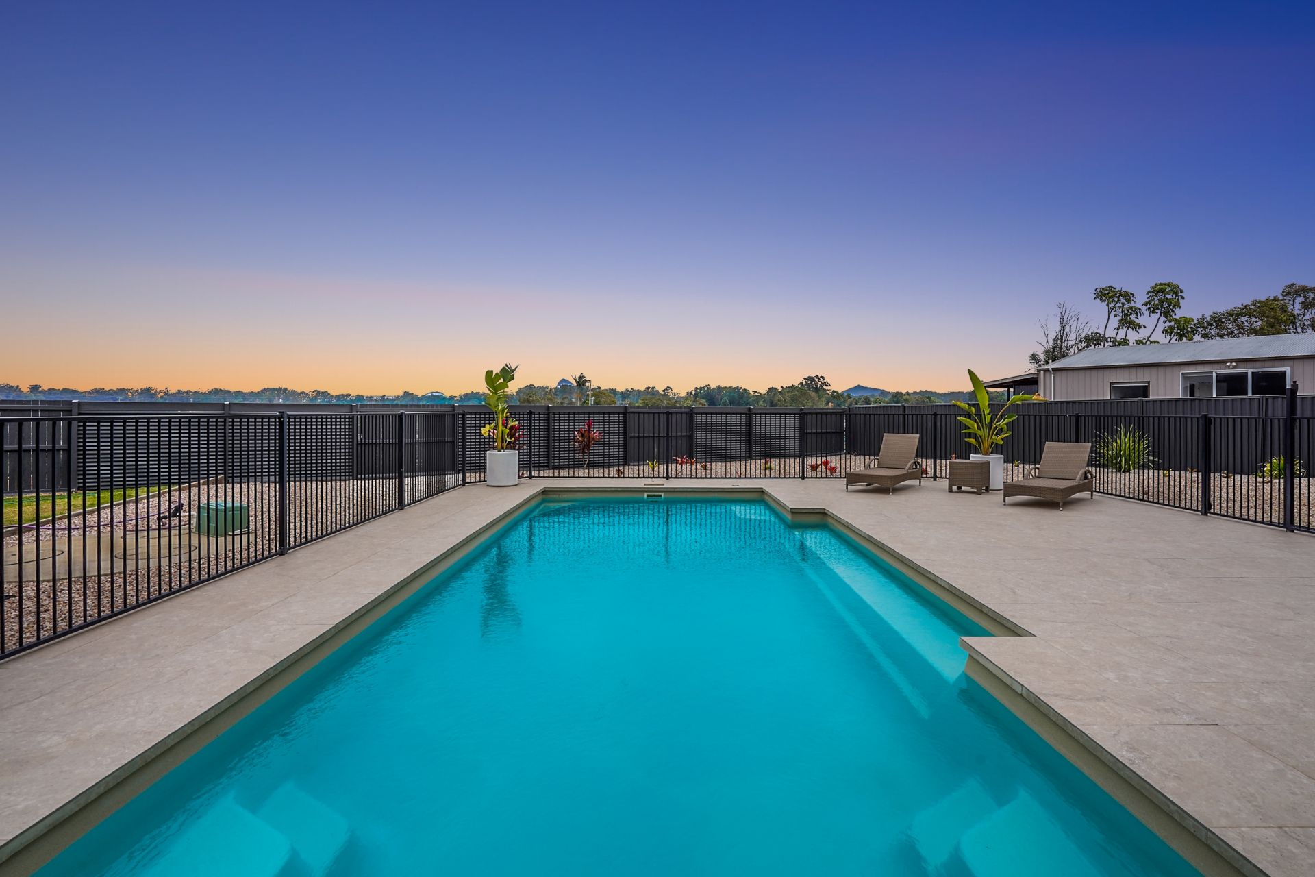 Outdoors, enjoy a stunning resort-style pool with Glasshouse Mountain views, a 6m x 6.4m enclosed alfresco area, circular driveway, and grand Porte Cochère.